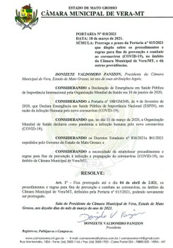 Portaria com medidas contra COVID-19 é prorrogada — CÂMARA MUNICIPAL DE VERA